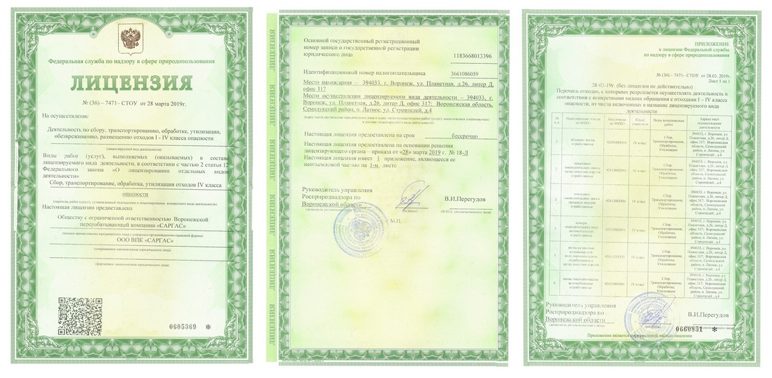 Именно поэтому ВПК "САРГАС" реализует на территории Воронежской области масштабную программу по утилизации и переработке шин в крошку. Уже сегодня наш завод - это линии переработки с производительностью более 3000 тонн в год! Всё технологическое оборудование линии соответствует самым современным требованиям отрасли, а экологичность производства подтверждена лицензиями РосПриродНадзора.